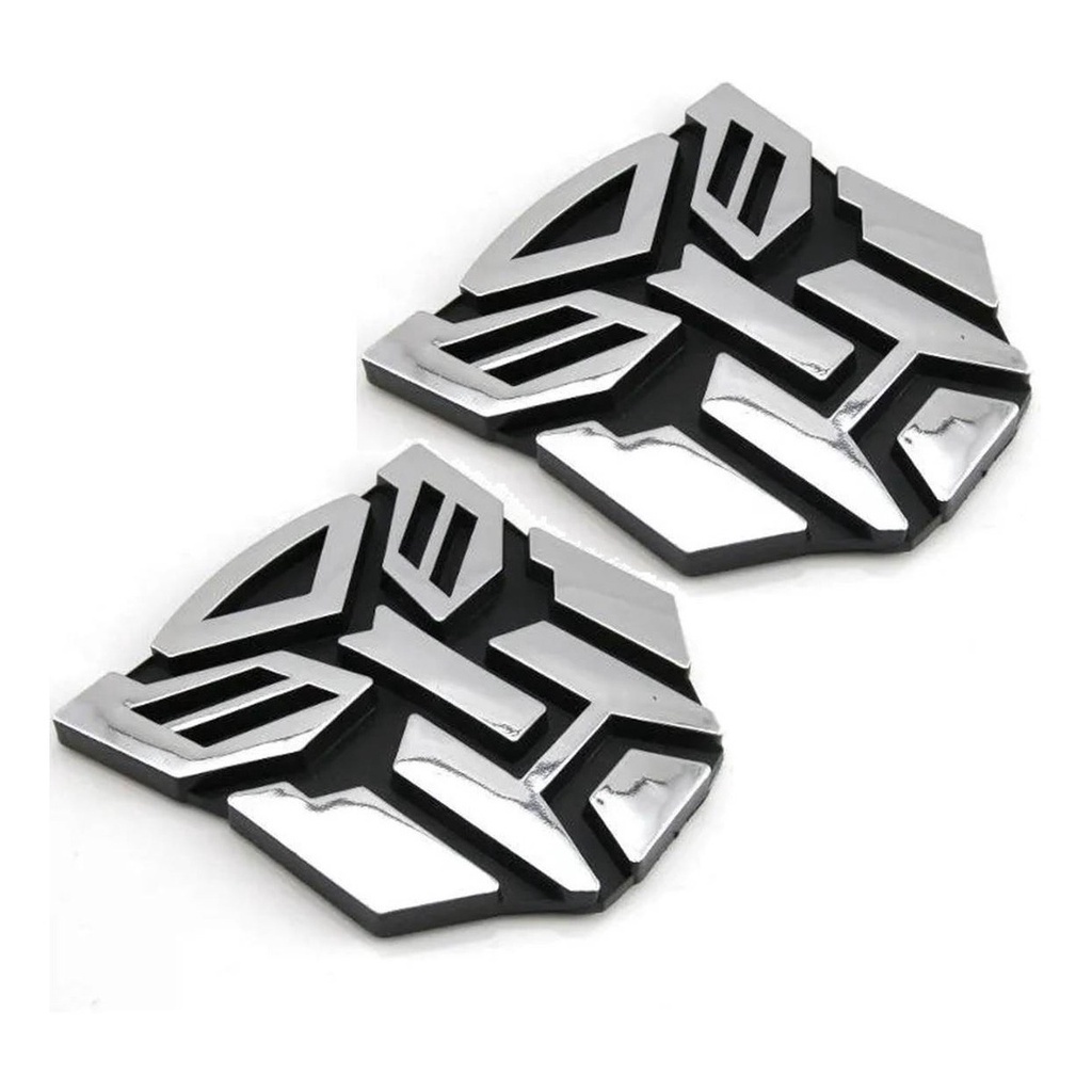 Par Emblema Adesivo Transformers Cromado Com Preto Carro Moto