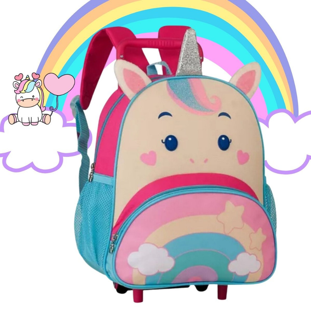 Mochila Infantil De Rodinha Carrinho Com Alças e Bolsos Escola Creche Passeio - Unicórnio