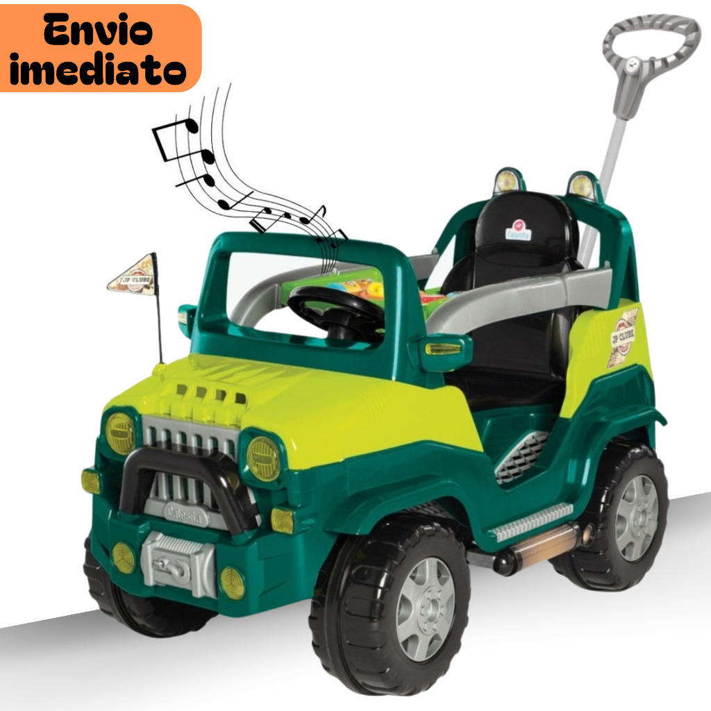 Carrinho de Passeio Infantil a Pedal com Haste de Empurrar com Buzina e Mesa Interativa