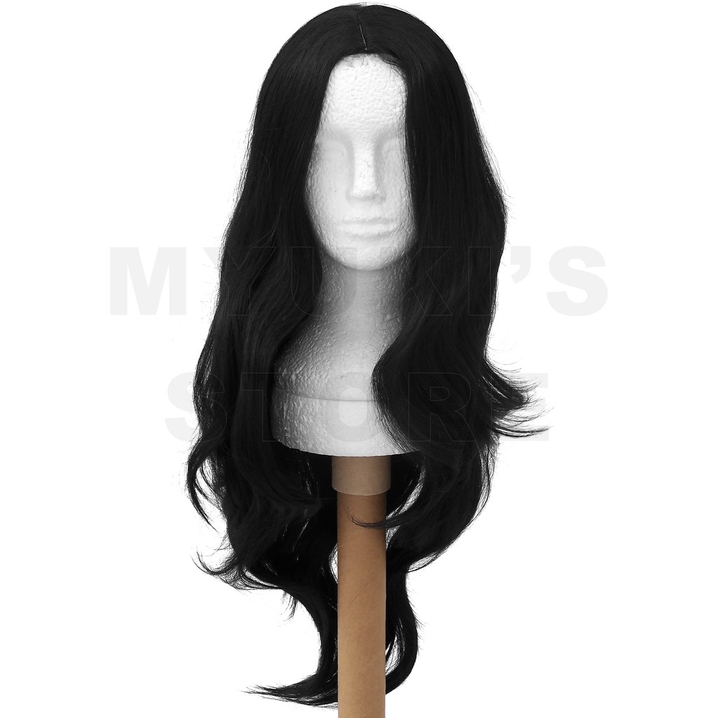 Peruca Sem Franja Preta Longa 75cm Levemente Ondulada Cosplay - Pronta Entrega!!