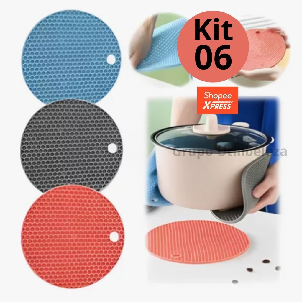 KIT 06 Descanso de Panela em Silicone Resistente ao Calor Antiderrapante Premium