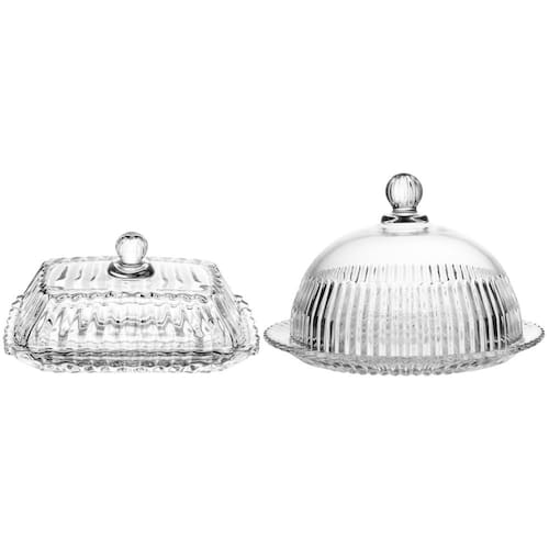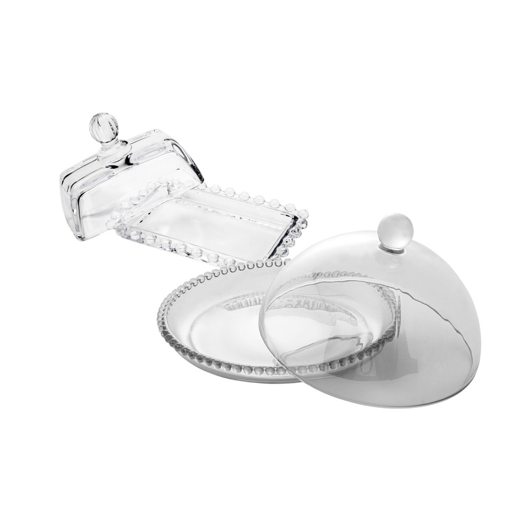 Kit Queijeira com Tampa 20x12cm e Manteigueira 14x9cm de Cristal Pearl Wolff