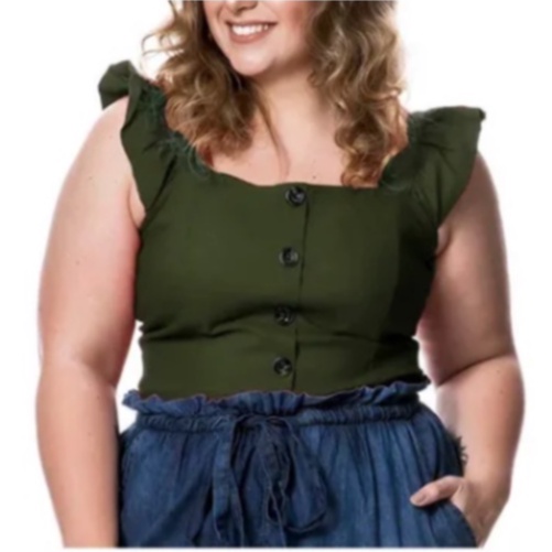 Blusa Alcinha Feminina Plus Size Cropped Blusinha Alça Grossa Laise Regata Feminina Babado Lesie Canelado Verão GG Veste 46 48 50 52