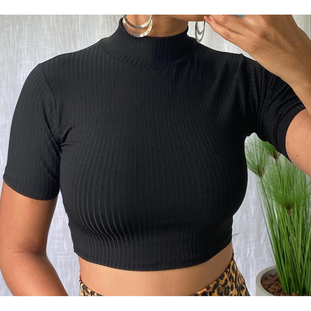 Cropped Gola Alta Canelado Feminina PLUS SIZE Tendência Verão