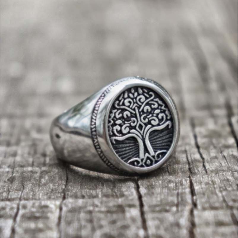 Moda Vintage Punk Aço Inoxidável Árvore Da Vida Sinete Anel Clássico Masculino Viking Amuleto