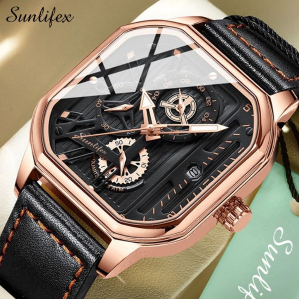 Relógio masculino Sunlifex 9095 quartzo esportivo casual pulseira de couro relógios masculinos