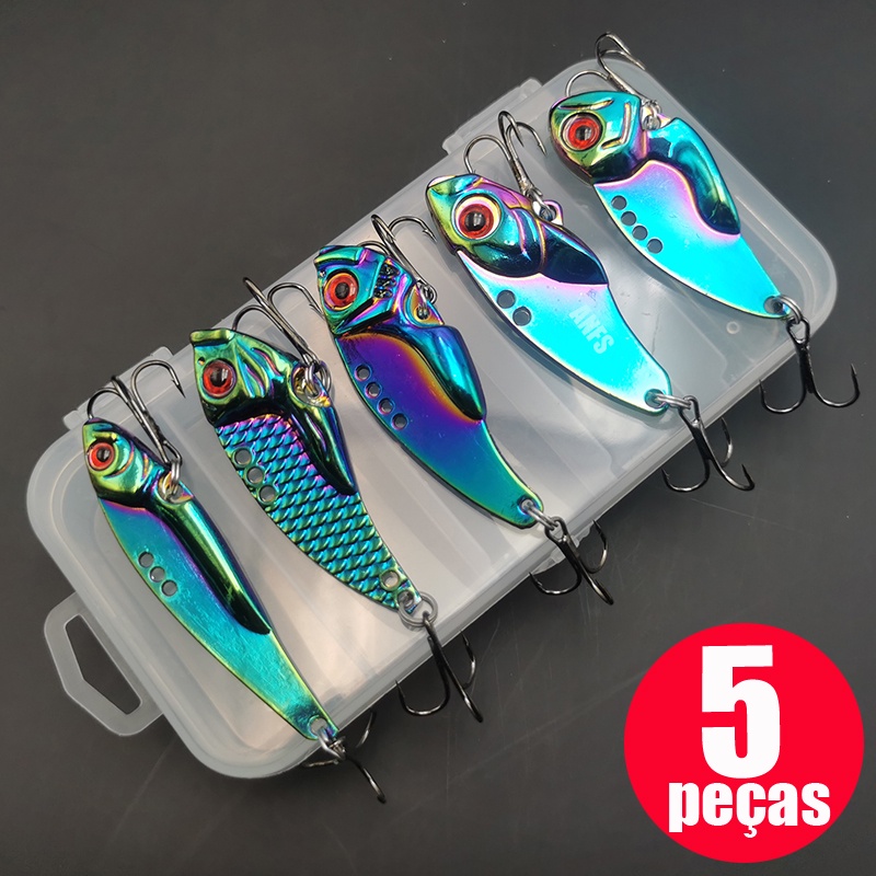 5 Peças kit De Isca De Pesca De metal Colher VIB Dura Artificial Anzóis Do Robalo
