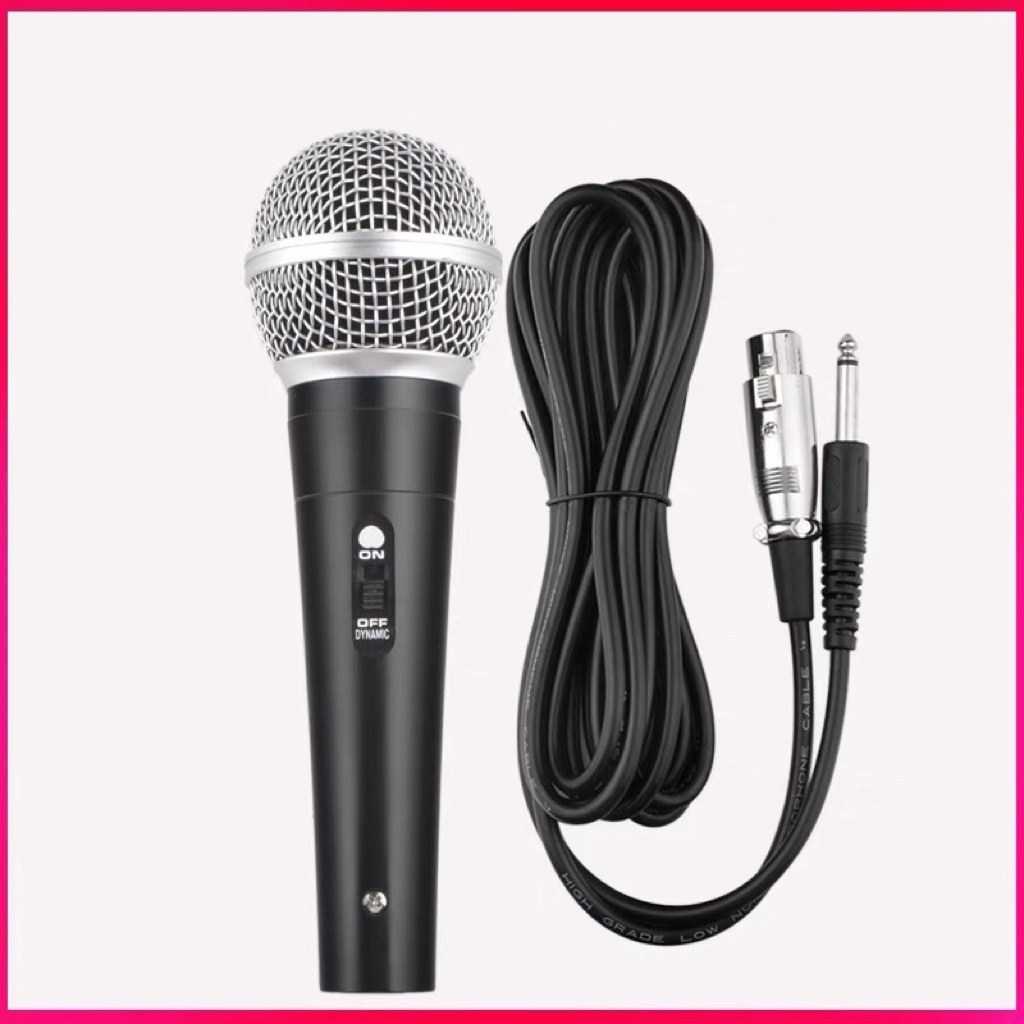 Microfone Dinâmico Profissional Com Cabo 2,5 Metros P10 para Karaokê Caixa de Som e Instrumentos