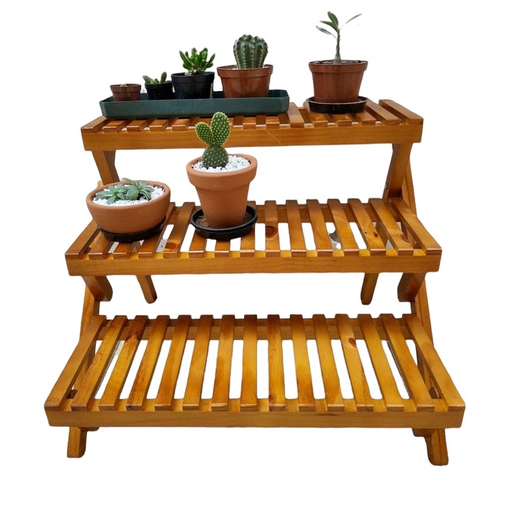 Floreira escada de madeira maciça envernizada na cor imbuia enfeite para a sala estante para plantas jardim