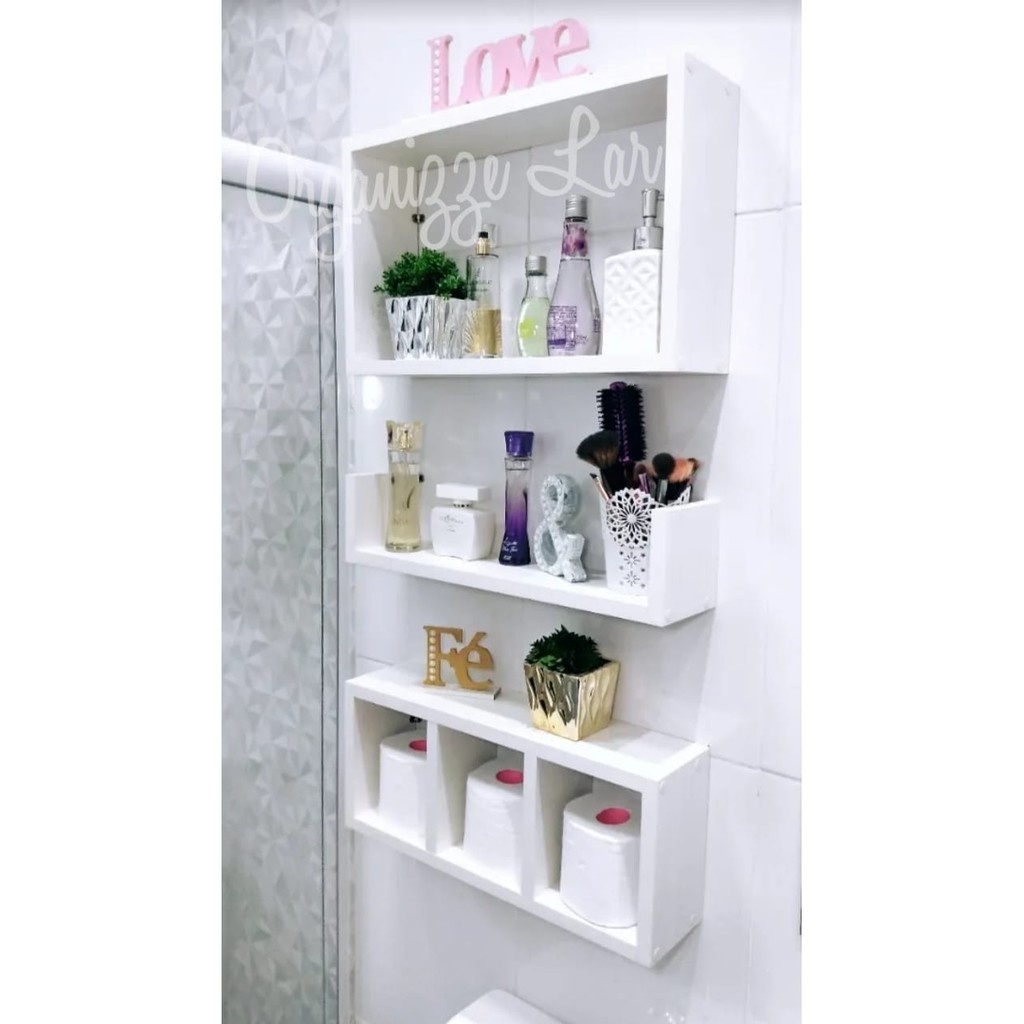Kit 3 Nicho prateleira 40cm Mdf Branco Banheiro Organizador Papel Shampoo Promoçao c\Suporte Invisível