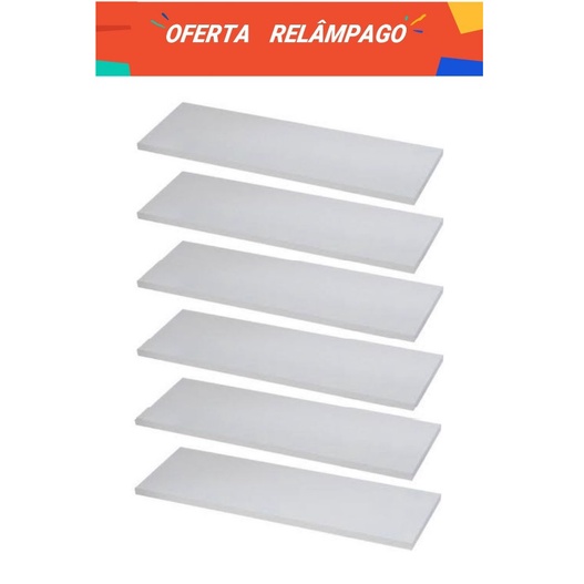 Kit 6 Prateleira Branca MDF 60 x 20cm Suporte Invisível