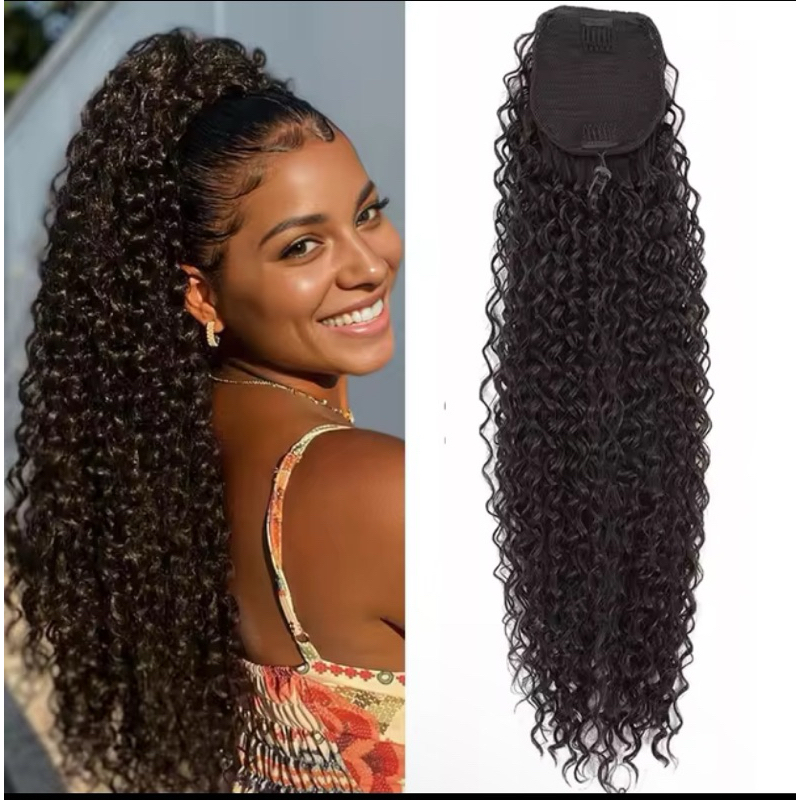 Rabo de Cavalo Cacheado - Liso Orgânico Extensão Bio Fibra Ondulado Encaracolado Idêntico ao Cabelo Humano Textura Natural Volumoso