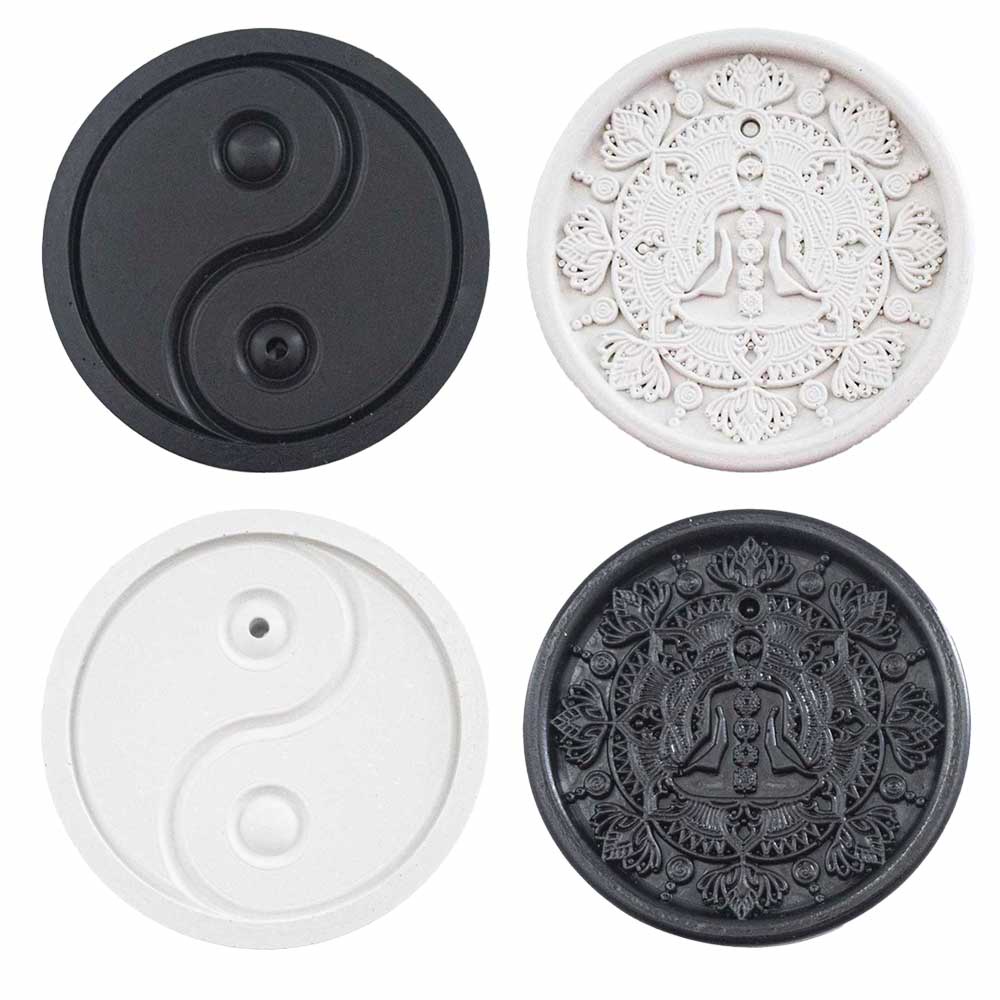 Porta Incenso Redondo Incensario Decorativo Ying-yang e Mandala Meditação Fengshui (Resina)