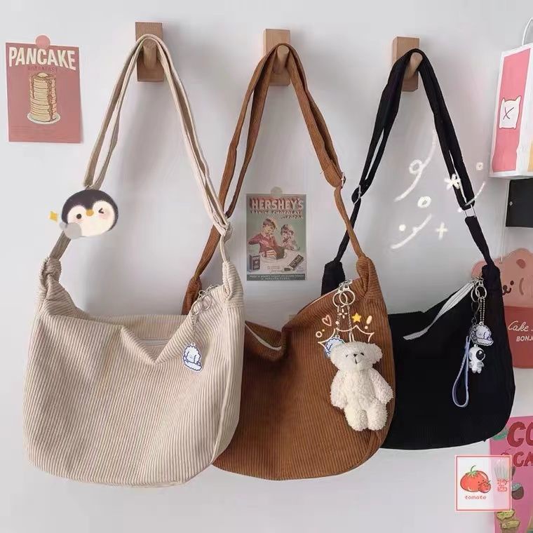 Corduroy Estilo Preguiçoso Combina Com Tudo Japonês Arte Um Ombro Mensageiro Estudante Casual Coreano Versão Feminina Simples Bolsa De Massa
