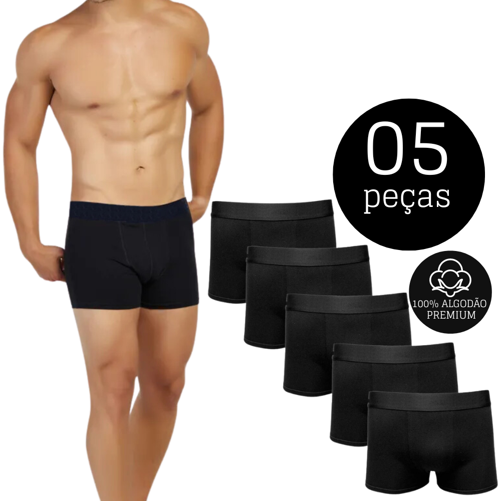 Kit Cueca Boxer Preta 5 Unidades, Original, Confortável