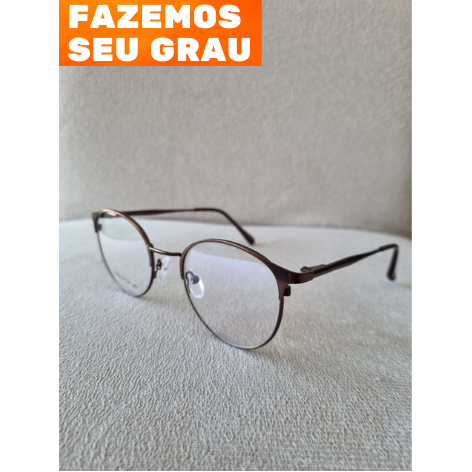 Óculos Armação Para Grau Redonda Grande De Metal Round Unissex E1G