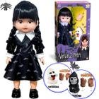 Boneca Vavazinha Wandinha Addams Vandinha Brinquedo Dia das Crianças Bruxas Festa Fantasia Baile para Meninas com Mãozinha e Fantasminha