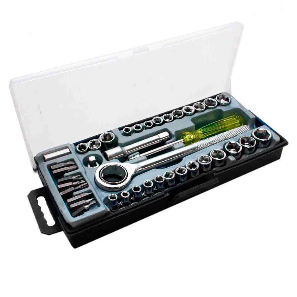 Jogo de Soquete 40 Peças Chave Catraca Reversível Ferramenta + Maleta