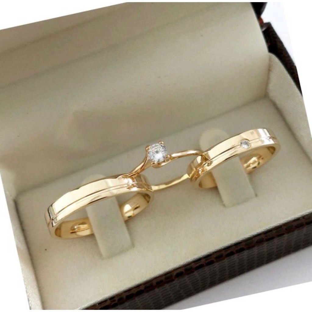 Par Alianças de Moedas Antiga Reta 5MM Friso e Pedra + Anel