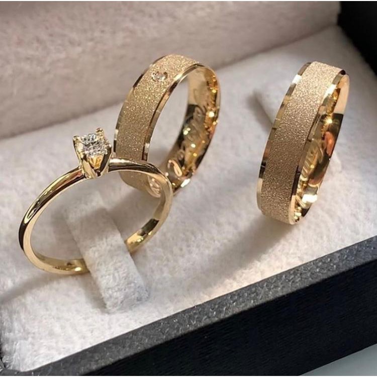 Par Alianças de Moedas Antiga Reta Jateada + Pedra e Forro