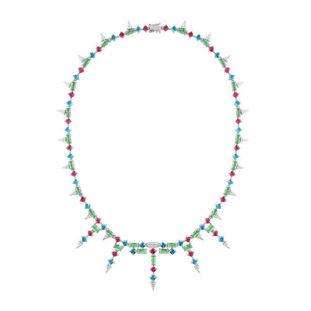 Colar Life Coloré Prata Cristal Verde Rosa e Azul