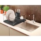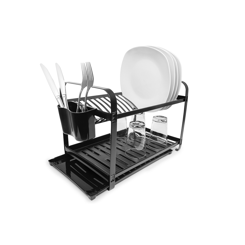 Escorredor de Louca inox Preto 16 pratos com bandeja e Porta talher Plastico