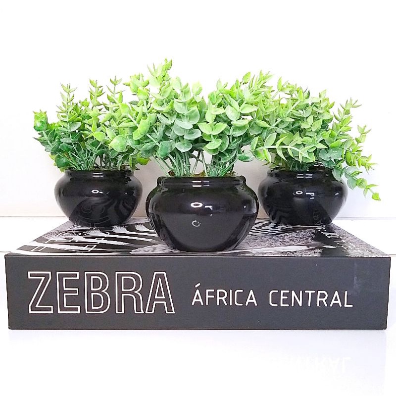 Vasinho de cerâmica com folhagem de eucalipto artificial para decoração