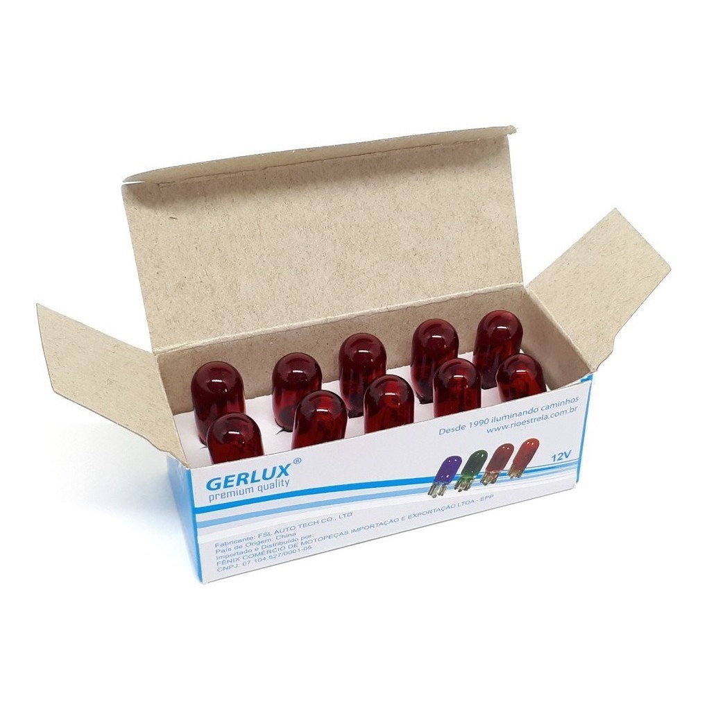 10 Lâmpadas T10 Esmagada Vermelha Pingo Inmetro Barato Custo Benefício Lanterna Meia Luz Farolete Luz de Presença