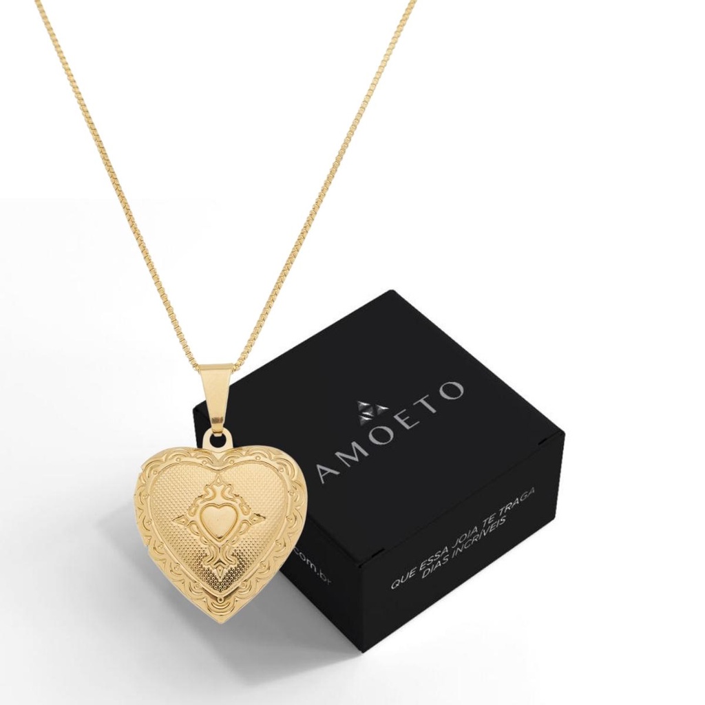 Colar Amoeto Relicário Coração Semijoia para Fotos e Aromaterapia