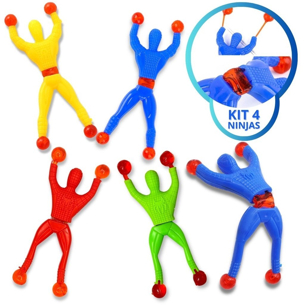 Kit 5 Boneco Gruda e Desce na Parede Ninja Color homen aranha