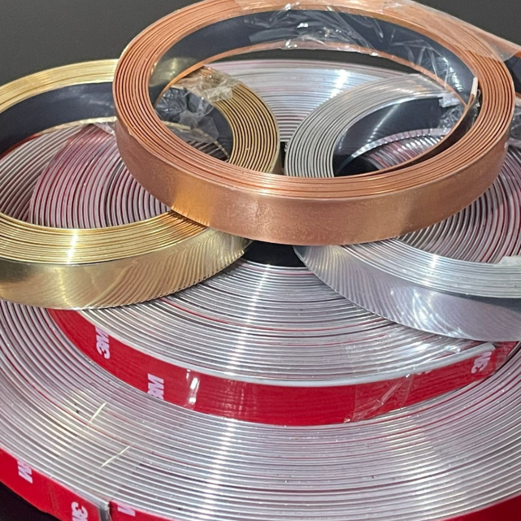 Fita Metalizada para Decoração 5 Metros, Adesivo Dupla Face PVC com Várias Larguras (11 a 20mm) para Parede, Porta
