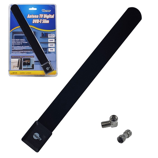 Antena Digital Interna Hdtv/vhf/uhf/fm Dvb-t Slim 30cm Na Cartela