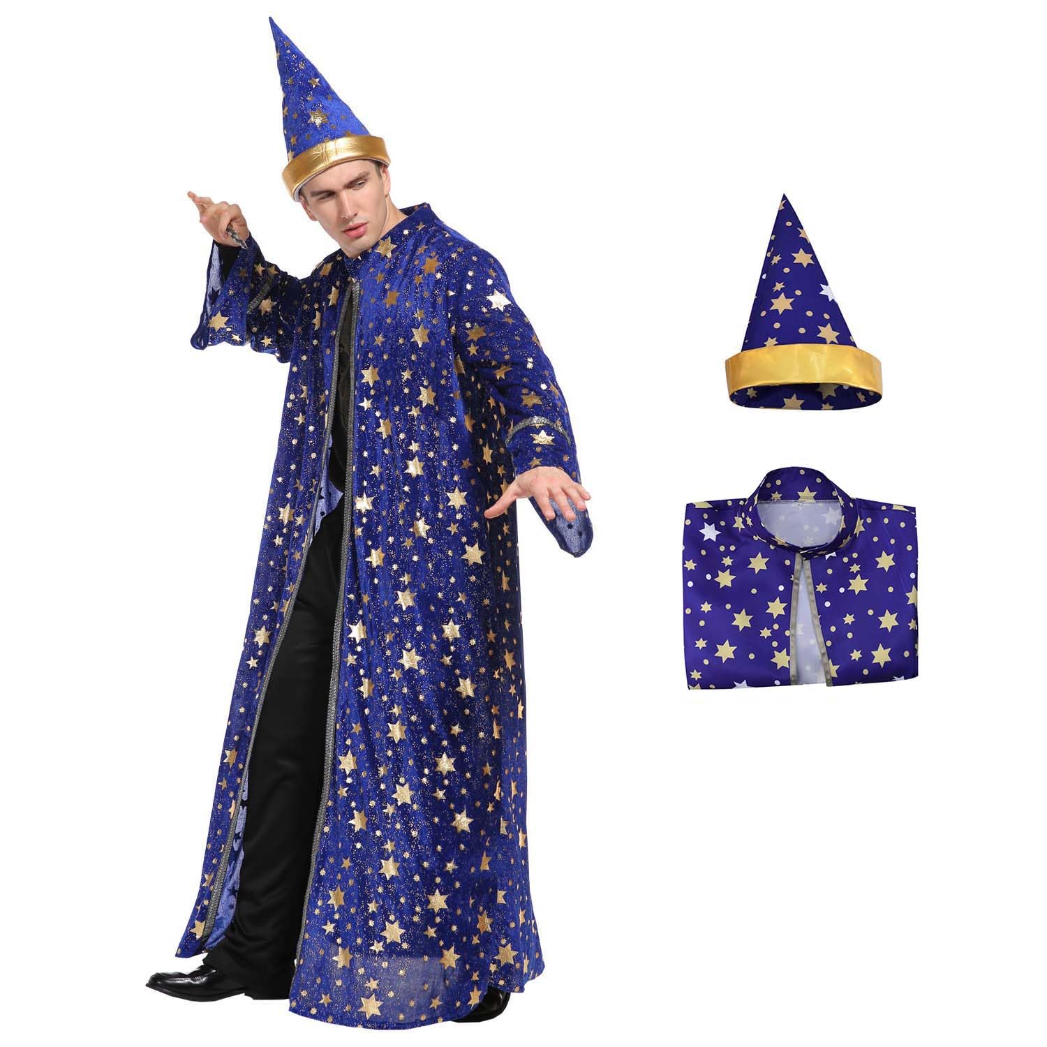 Fantasia De Feiticeiro, Capa E Chapéu, Roupão De Halloween Magic Wizard Para Adultos (azul, Gg)