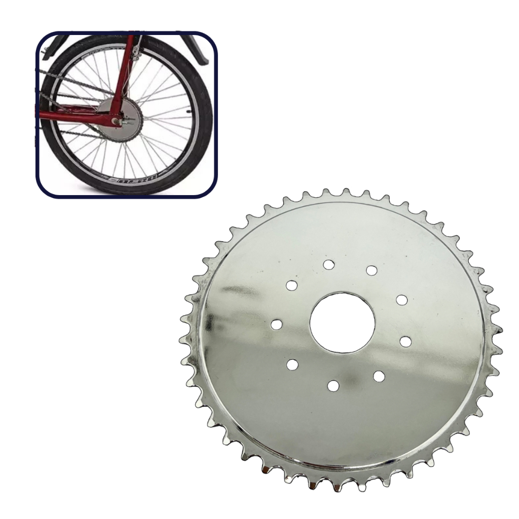 Coroa 44 Dentes para Cubo de Freio à Disco Roda Traseira para Bicicleta Motorizada 2 Tempos Cromada
