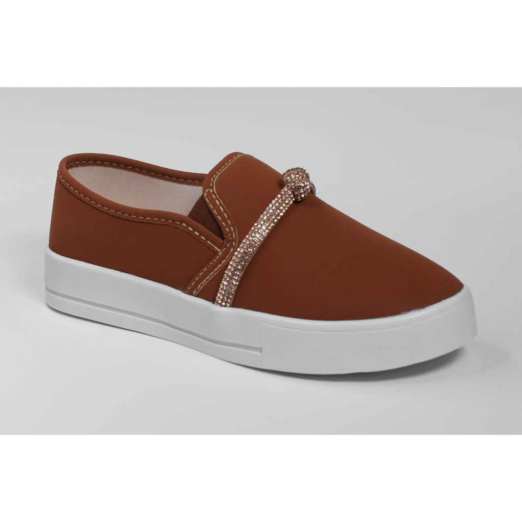 Tênis Feminino Stillus Casual Iate Slip On Calce Fácil confortável Laço Strass