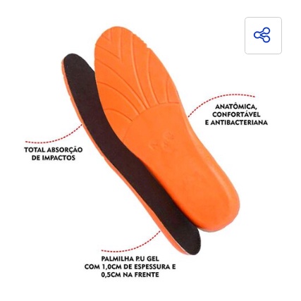 PALMILHA EM GEL PU ANTI-IMPACTO SUPER CONFORTAVEL E AMORTECEDOR PARA BOTA TÊNIS