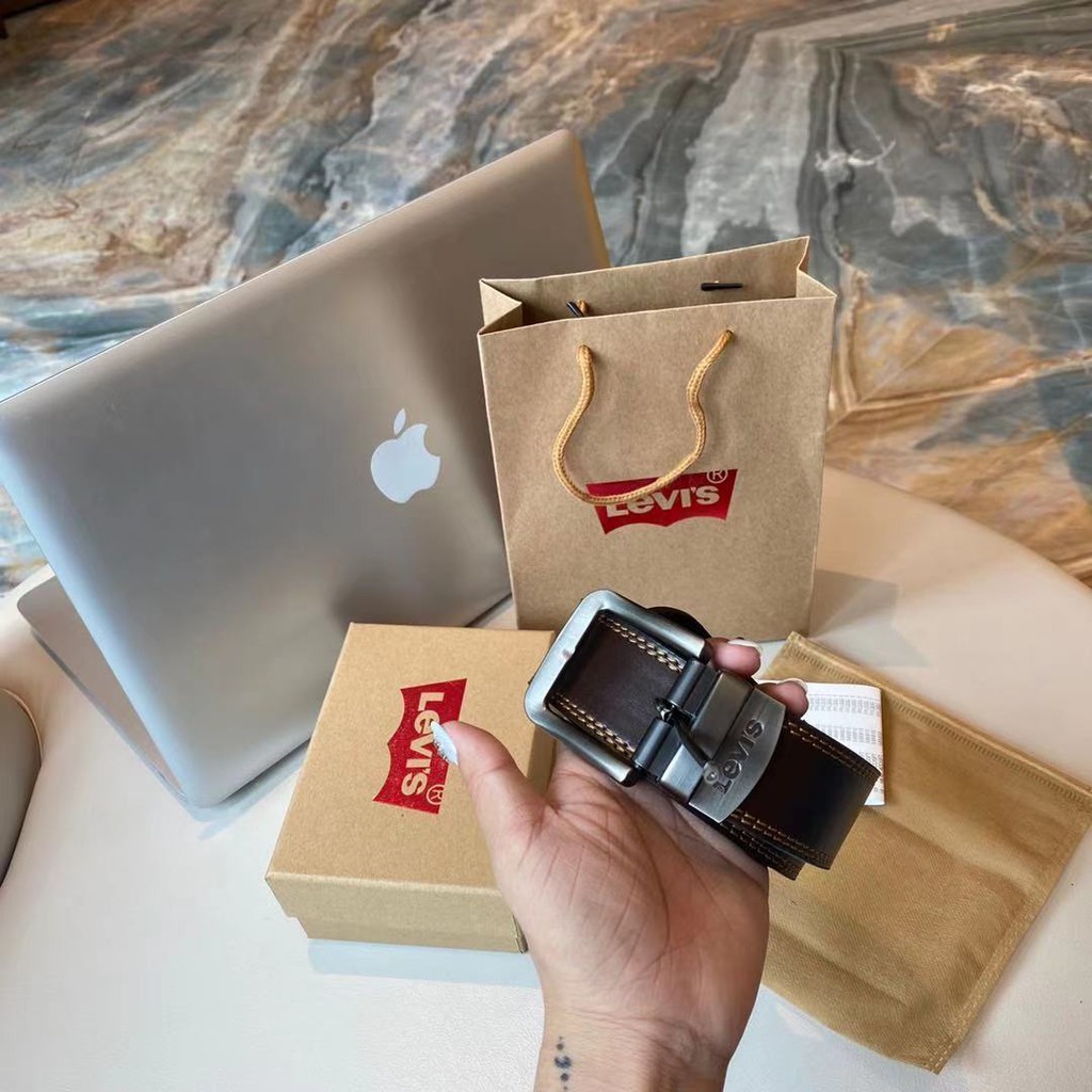 [Puu]{Caixa de presente} O cinto de fivela com alfinetes de couro corporativo masculino casual Levi’s pode ser embalado