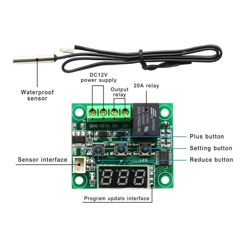 Termostato Digital W1209 + Sensor Ntc 30 Cm