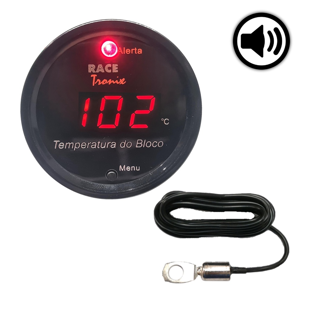 Medidor Temperatura do Bloco do Motor Digital Vermelho Racetronix TB10 Com Sensor 2,4m e Sirene Alerta Sonoro