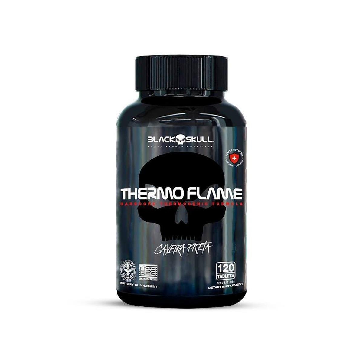 Termogenico Thermo Flame 120 Tabletes - Black Skull com Cafeina 60 Capsulas