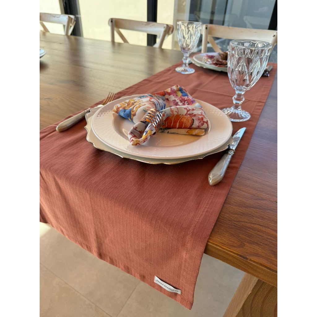 Kit 1 Trilho Caminho de Mesa em algodão 40 cm x 1,40 m + 2 guardanapos em linho misto 42 cm x 42 cm Mesaposta