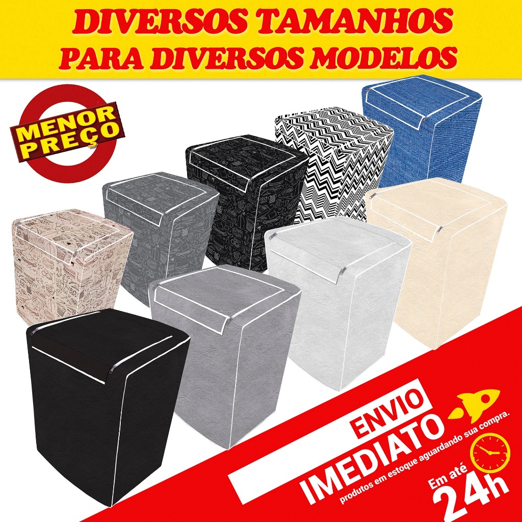 Capa Máquina de Lavar Cinza Bege Branca Preta ou Lavanderia Bege ou Cinza Tamanhos P M G GG Abertura Superior com Zíper