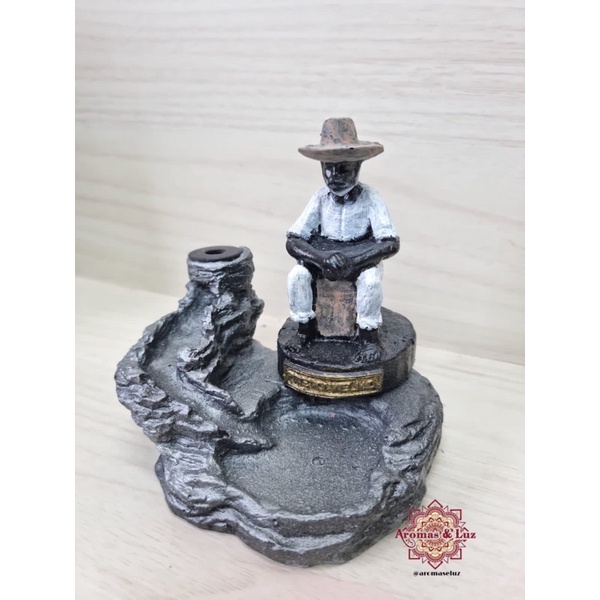 Incensário Cascata Com Preto Velho Em Resina