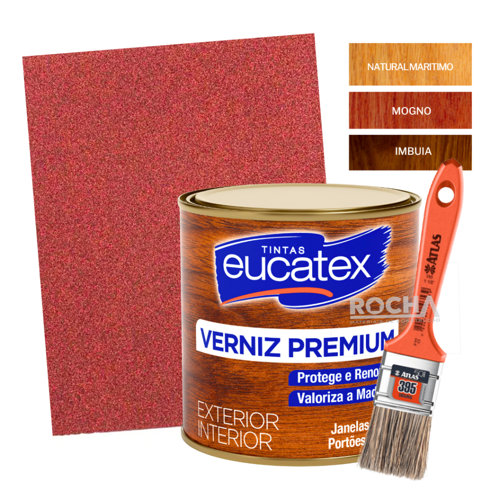 Verniz para Madeira 900ml + Trincha Pincel 2 Polegadas Kit prático Tinta Eucatex Imbuia/Mogno/Marítimo