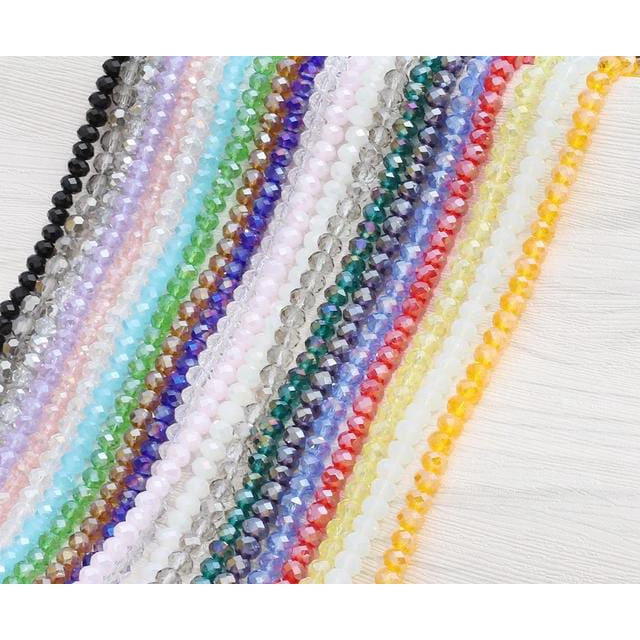 Fios de cristal facetado de vidro flat 4mm cerca de 110 a 140 contas por fio - Montagem de terços, pulseiras, tiaras, guias, japamalas e semijoias em geral