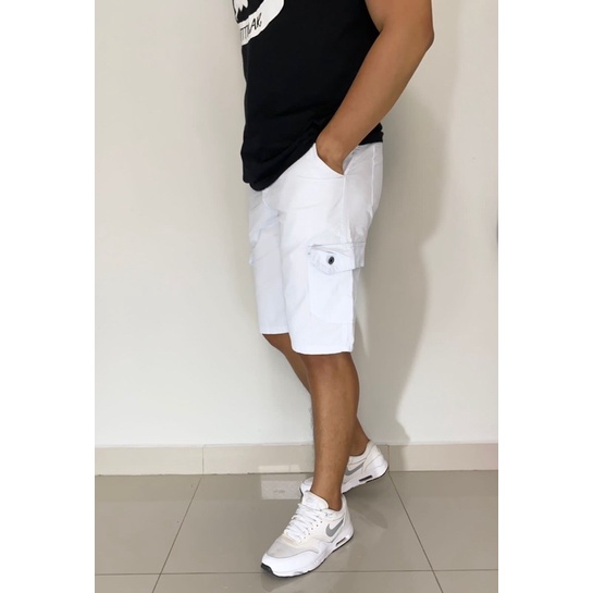 Bermuda Cargo De Sarja Masculina Com Bolsos Color Casual