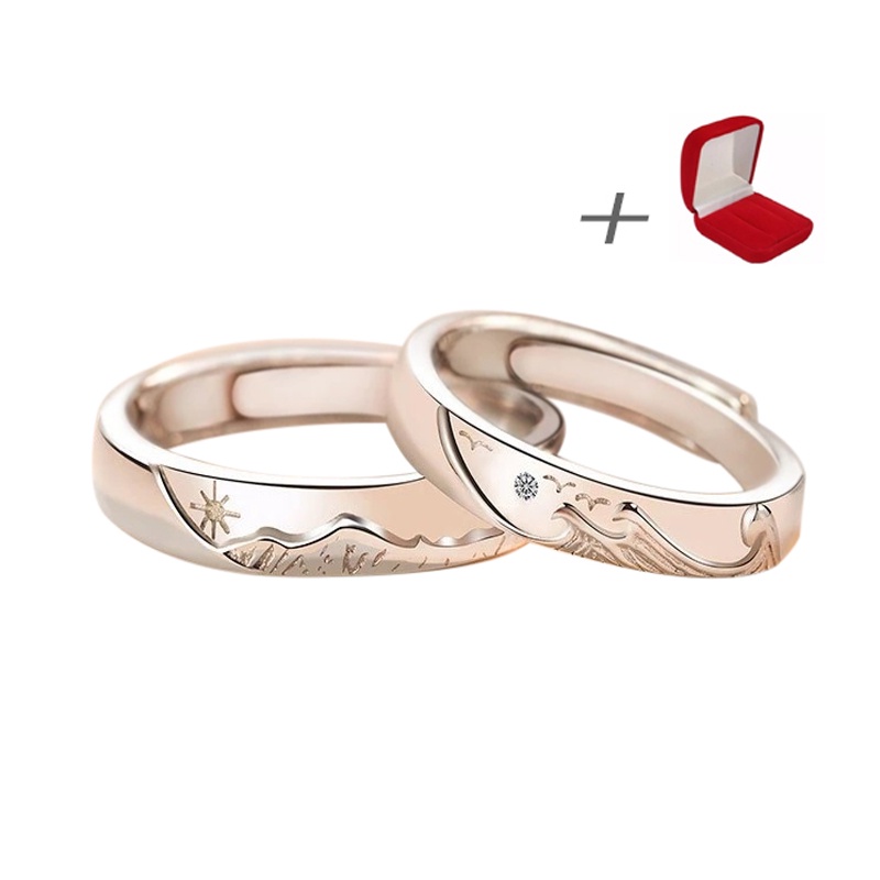 Alianças Anel Sol e Lua Prata 925 Ajustável Para Namoro Casal Compromisso