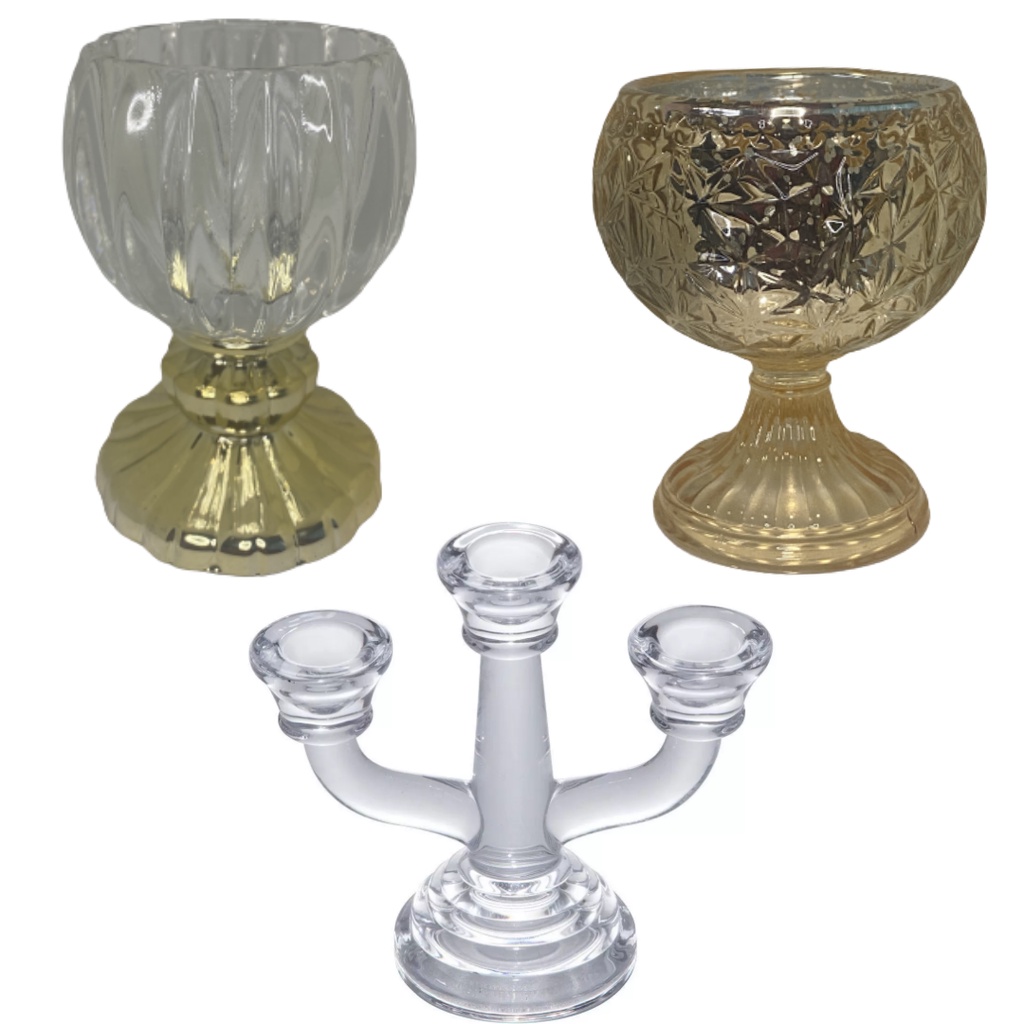 Castiçal Provençal ou Castiçal Imperial+ Porta Vela de Vidro Transparente