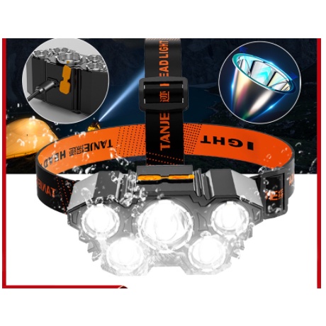 Lanterna de cabeça recarregável 5 led prova d água super brilhante