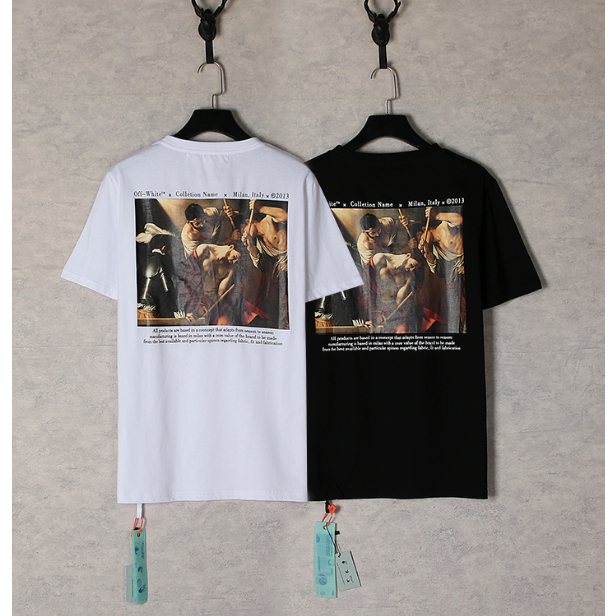 Nova Camiseta Listrada OW Flecha Algodão Homens Mulheres Casual Manga Curta